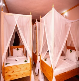 Generously sized accommodation designed for families, providing comfort, convenience, and a warm safari-inspired atmosphere.